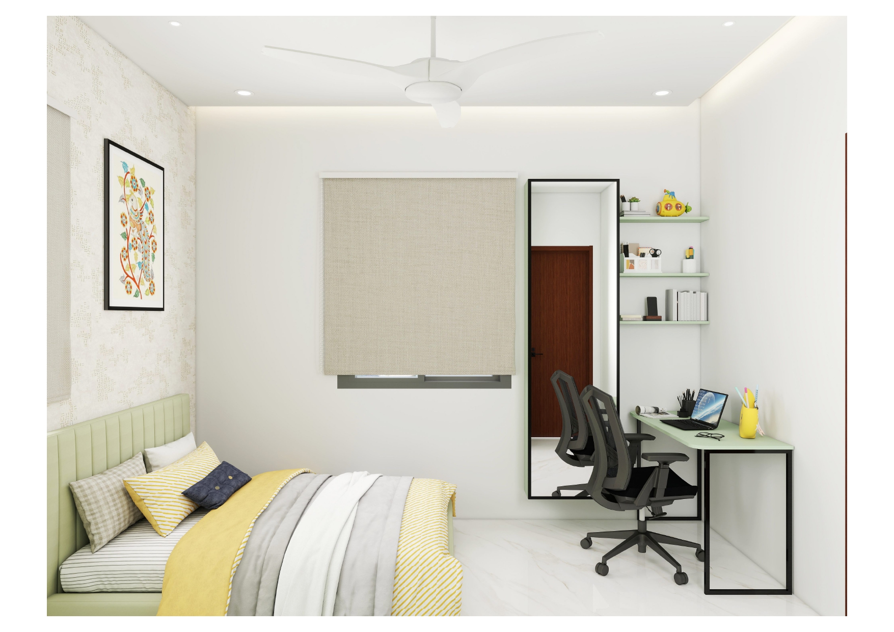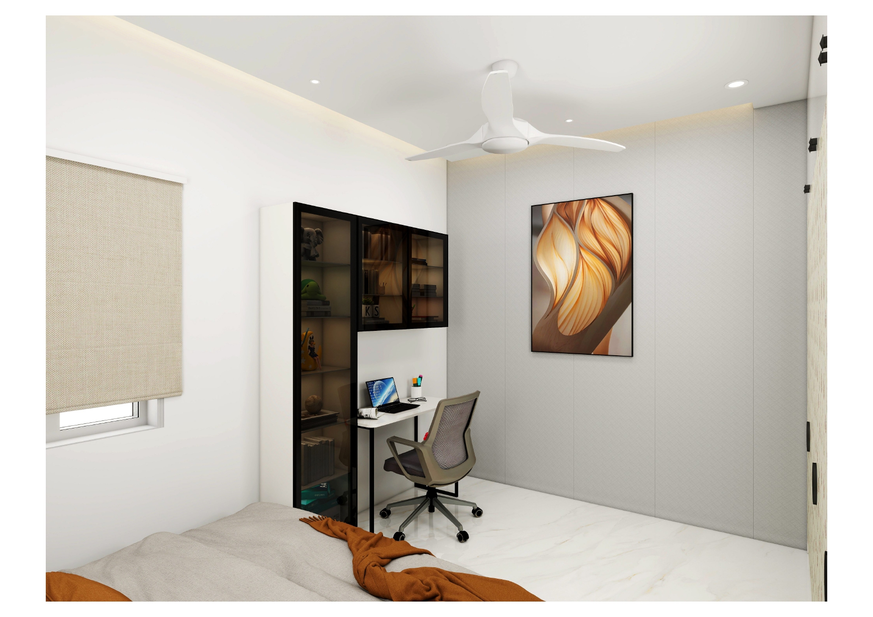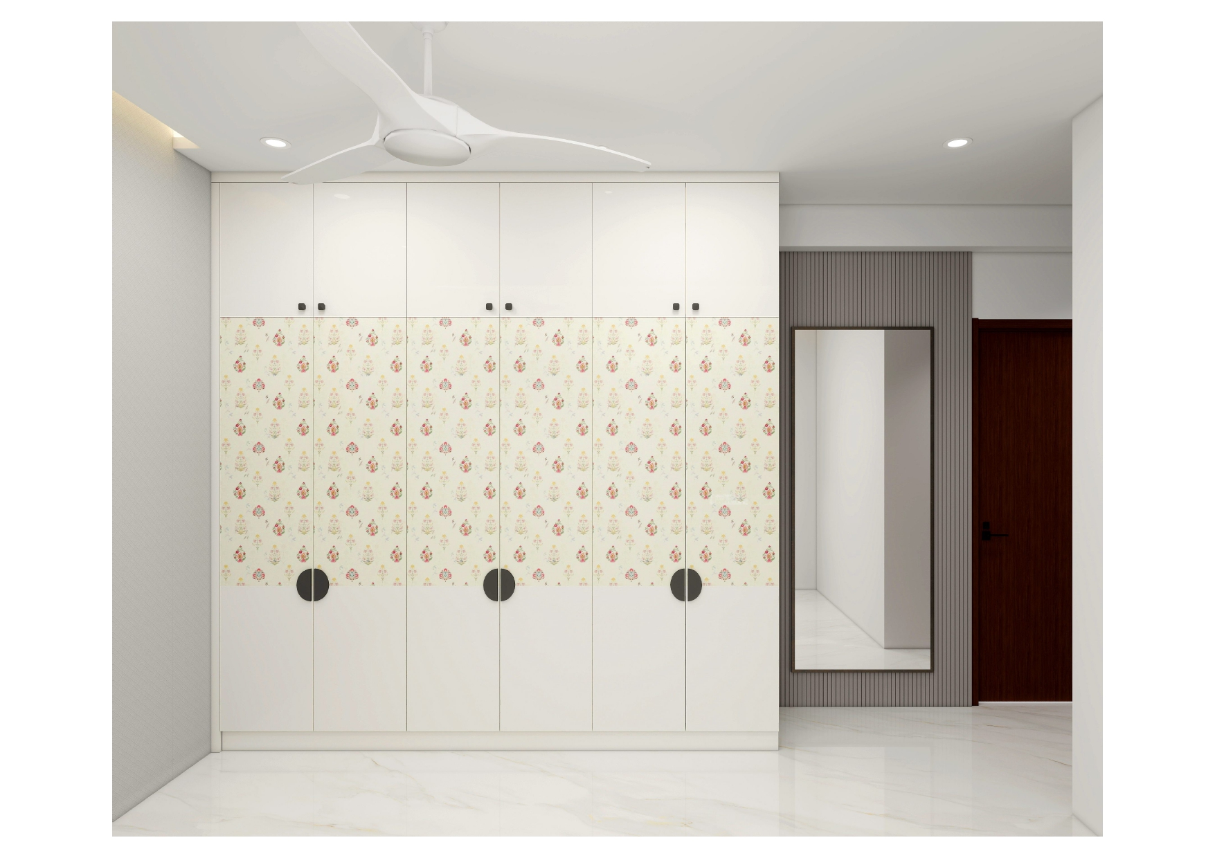 Bedrooms prioritize calm comfort with custom minimalist wardrobes, soft neutral furnishings, and restrained décor. Thoughtful textures add warmth and depth to the serene white scheme.