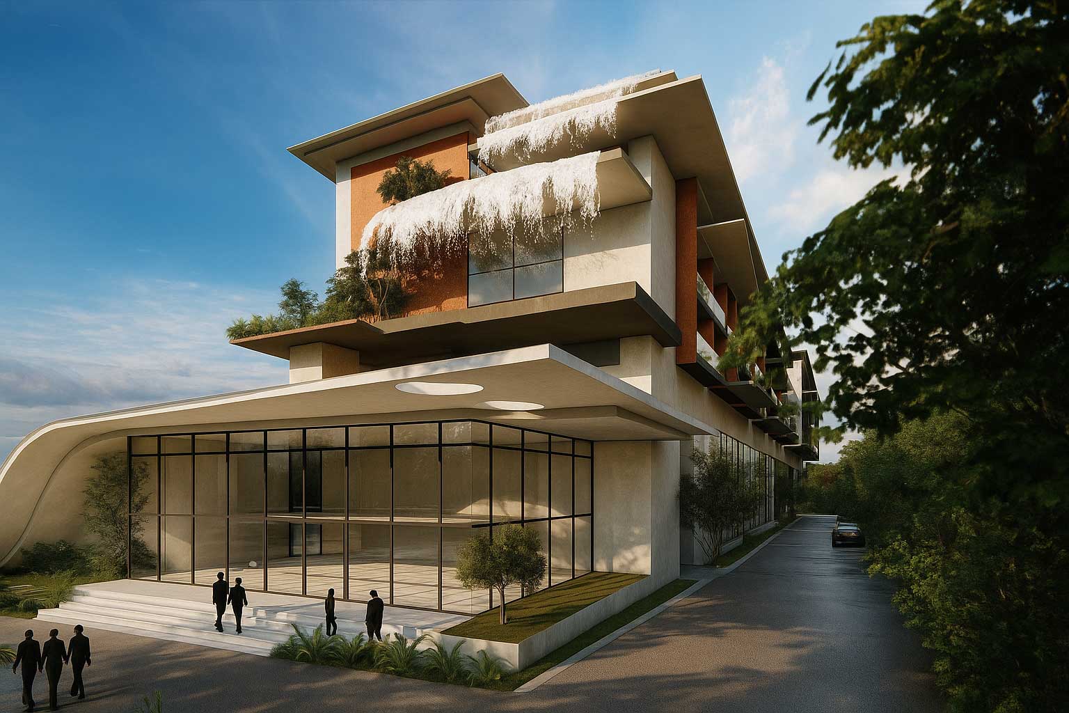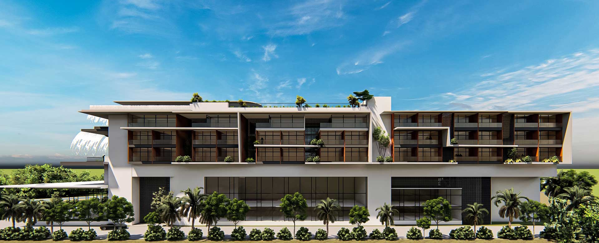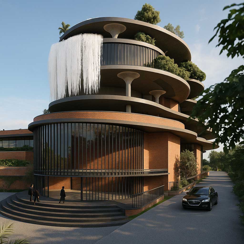 Hospitality – A 100-key retreat in Nandi Hills blending terraces, nature, and water features.