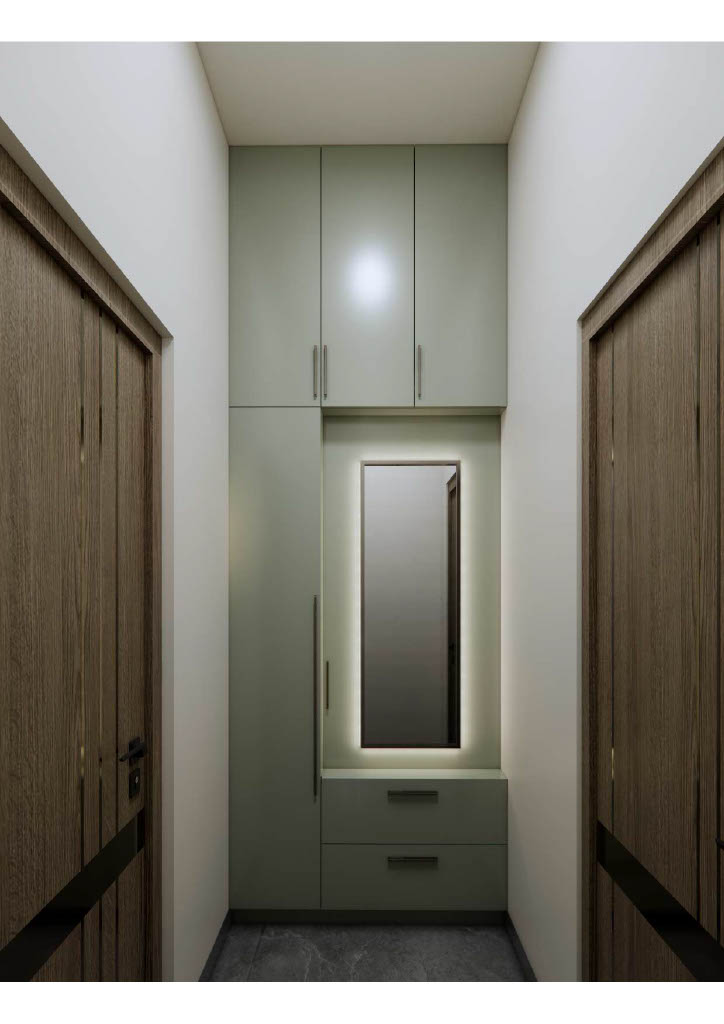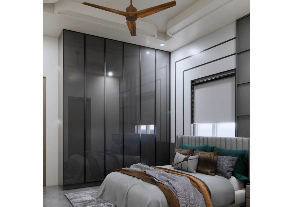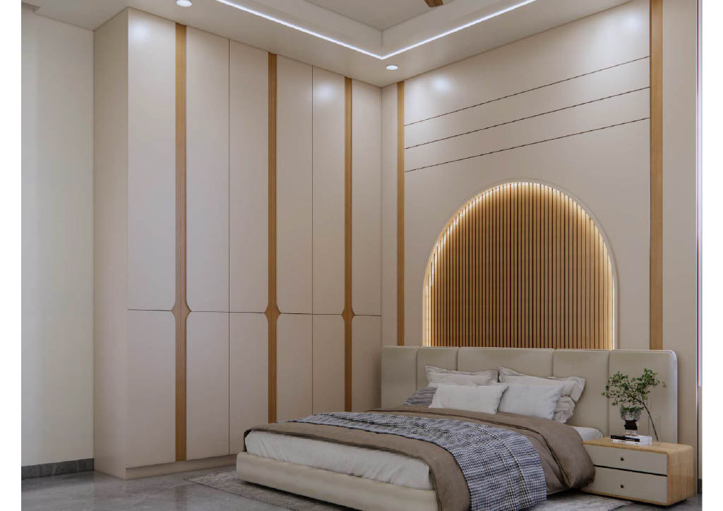 Bedrooms prioritize calm comfort with custom mordern wardrobes, soft neutral furnishings, and restrained décor. Thoughtful textures add warmth and depth to the serene white scheme.