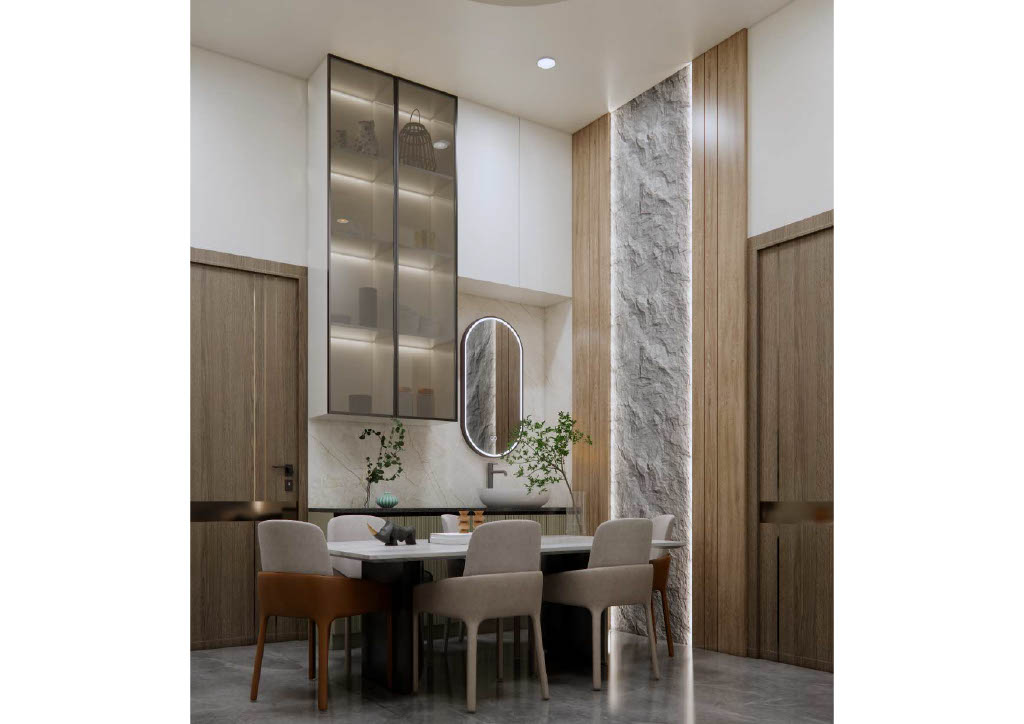 Site Renders embodies elegant serenity through a modern white palette and stylish minimalist approach. Living spaces feature clean lines, subtle wooden accents, and abundant natural light for an open, tranquil feel.