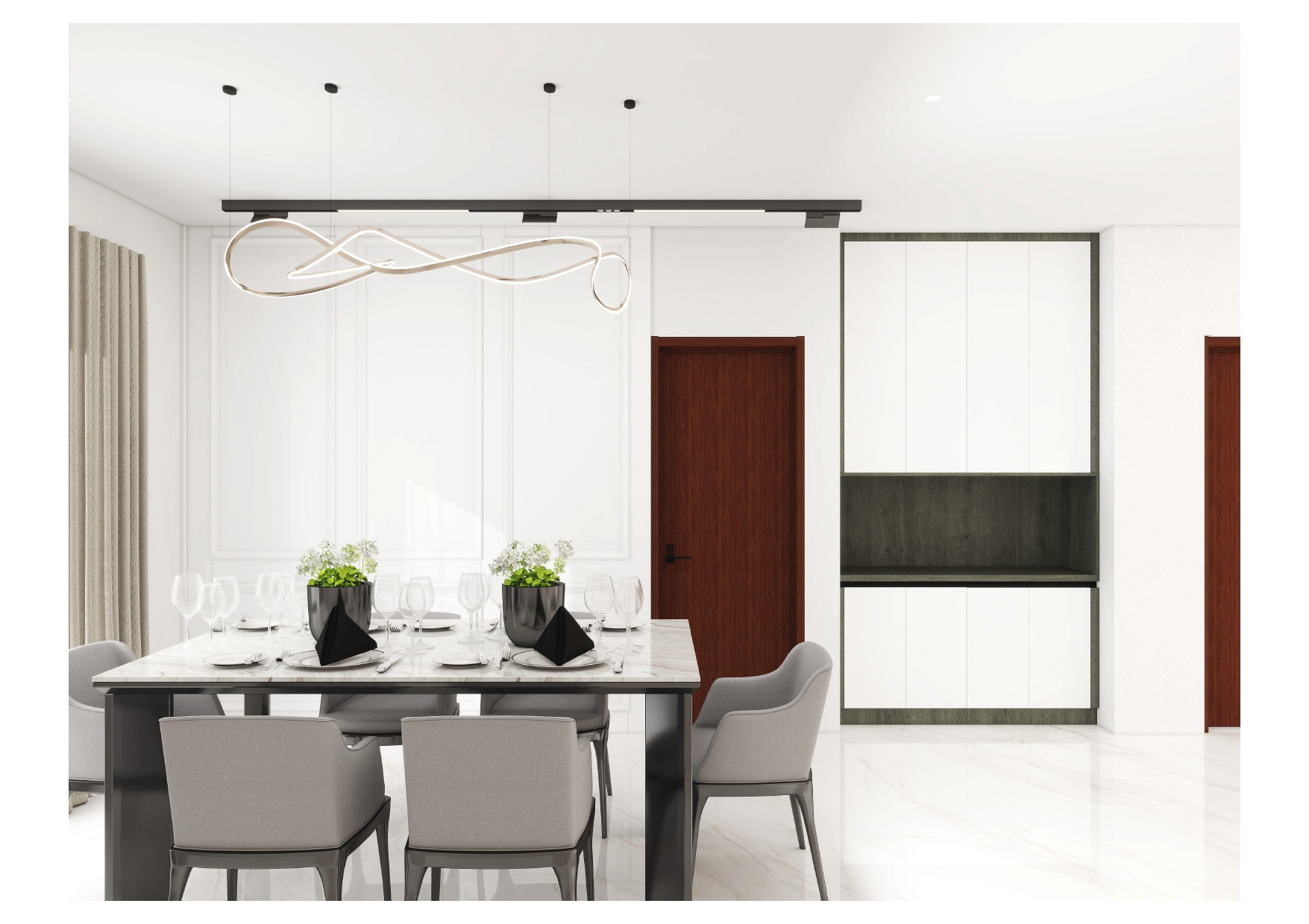 Econest 3D embodies elegant serenity through a modern white palette and stylish minimalist approach. Living spaces feature clean lines, subtle wooden accents, and abundant natural light for an open, tranquil feel.