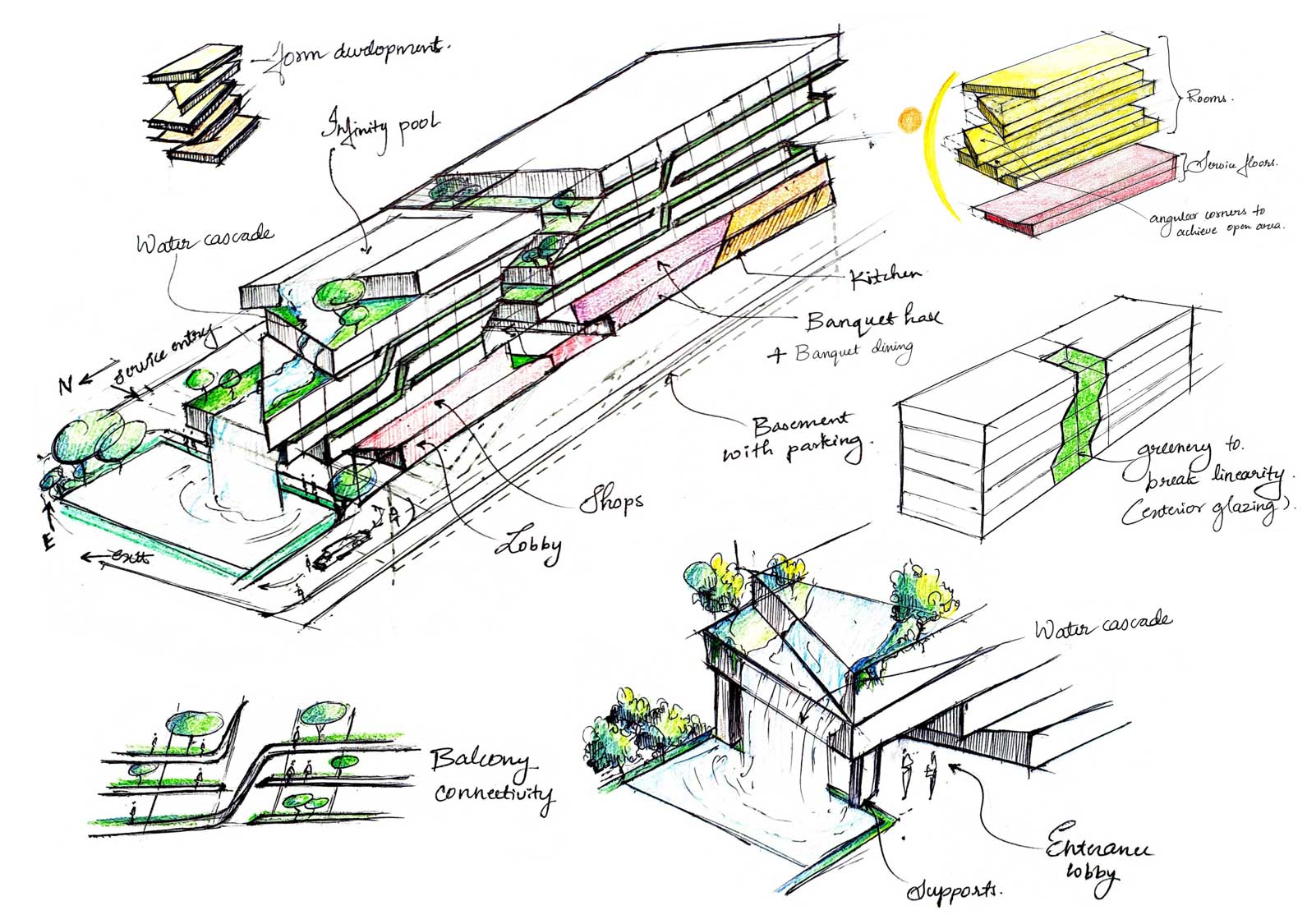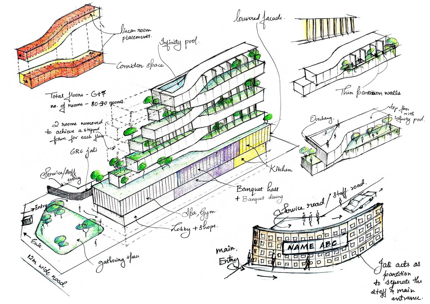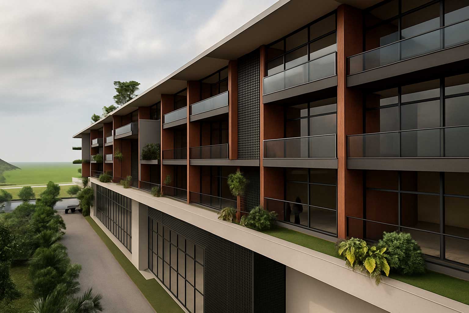 Hospitality – A 100-key retreat in Nandi Hills blending terraces, nature, and water features.