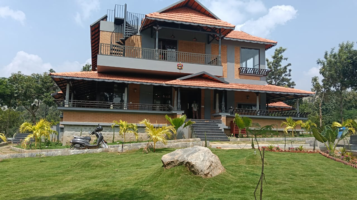 A 6,000 sq ft haven in Denkanikottai, this Thotti Mane embodies a thoughtful blend of traditional charm and modern functionality. Constructed using sustainable CSEB blocks, the eco-friendly home features expansive rooms that open onto a serene central courtyard, fostering a deep and constant connection with nature.