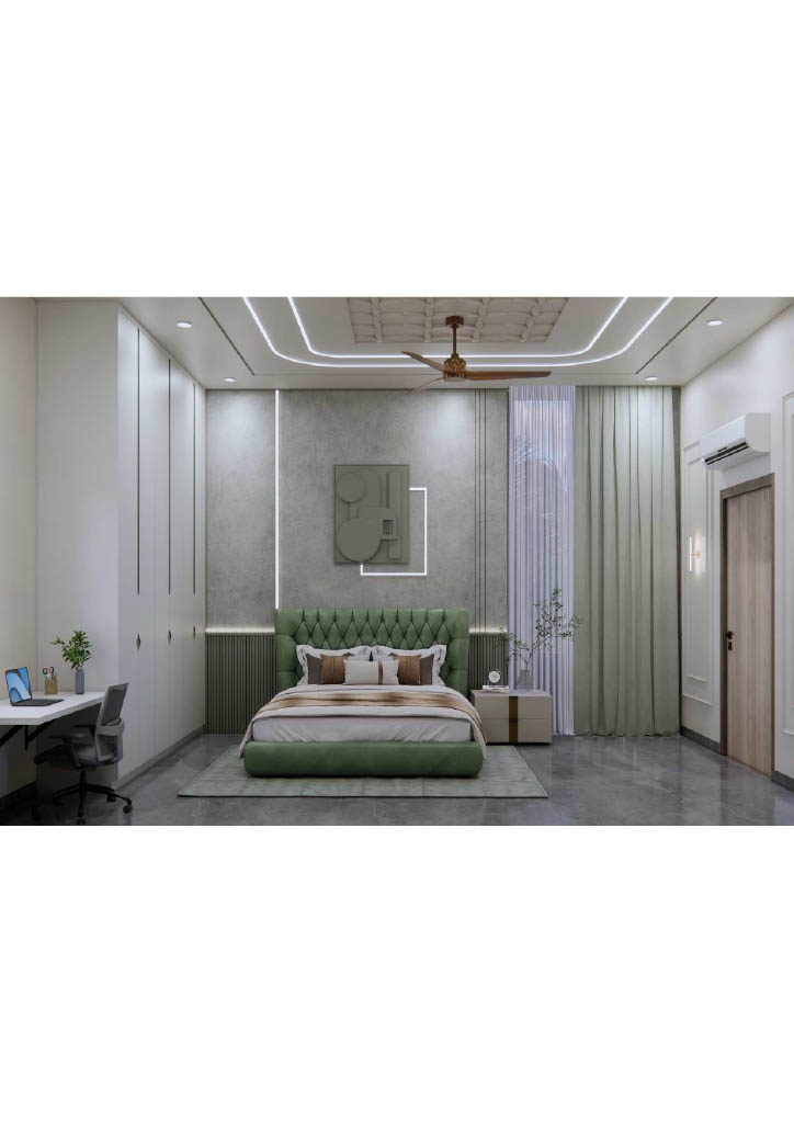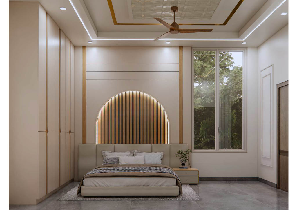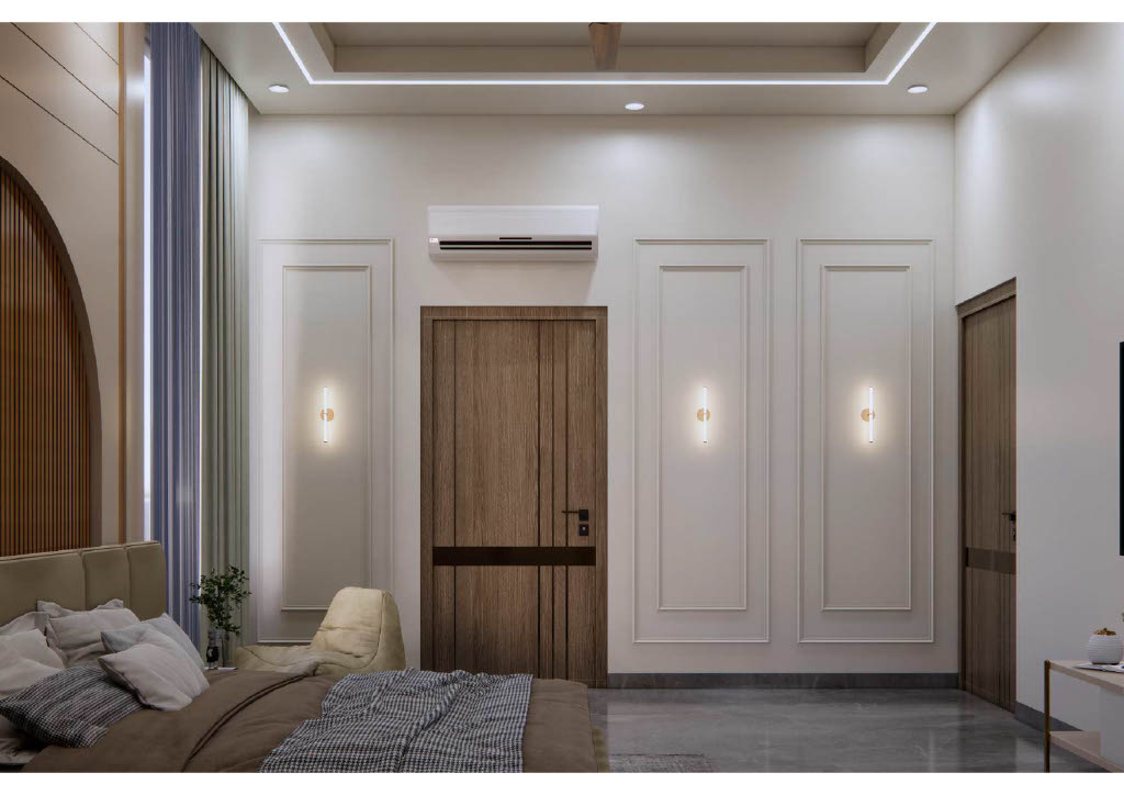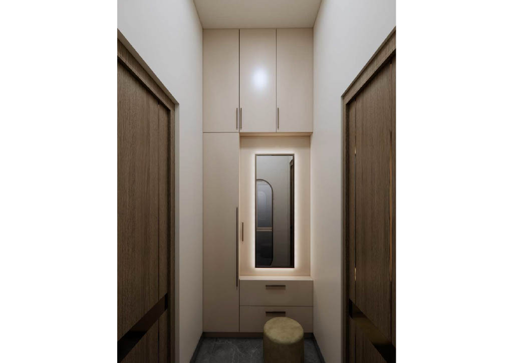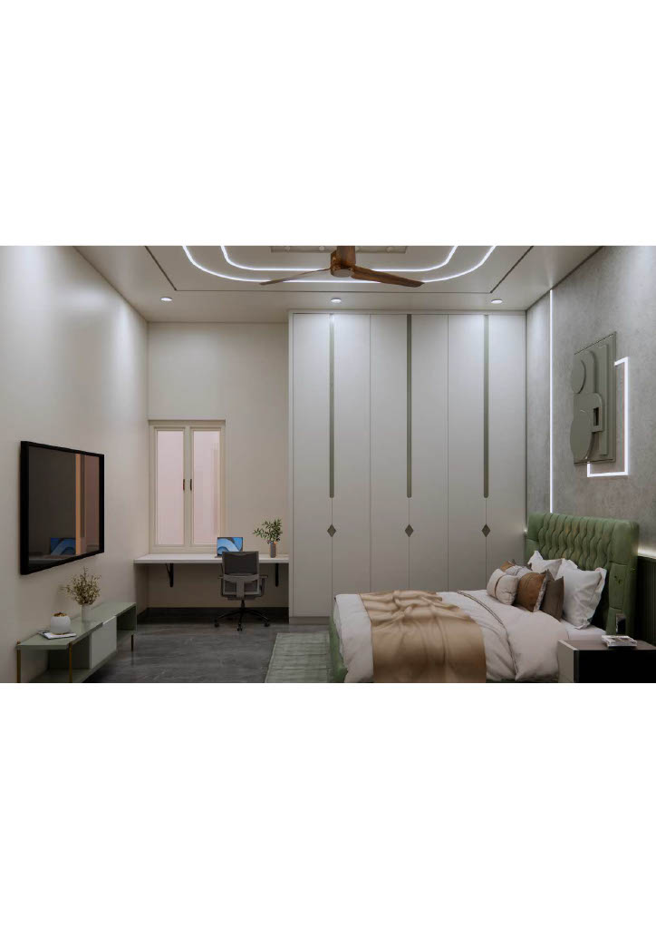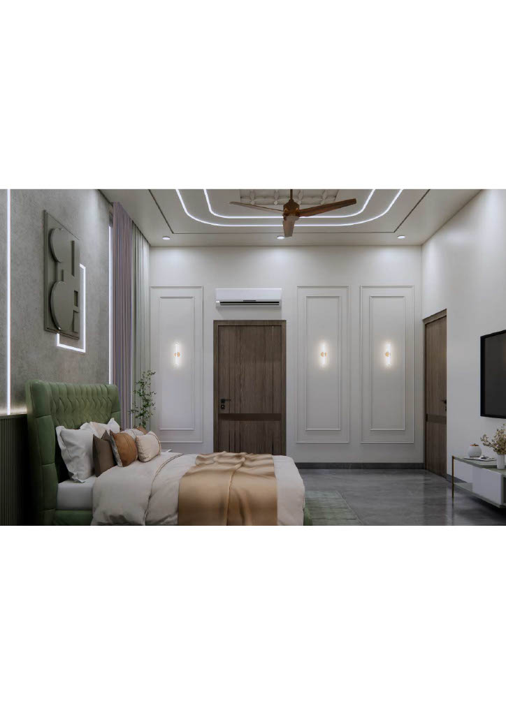 Bedrooms prioritize calm comfort with custom mordern wardrobes, soft neutral furnishings, and restrained décor. Thoughtful textures add warmth and depth to the serene white scheme.