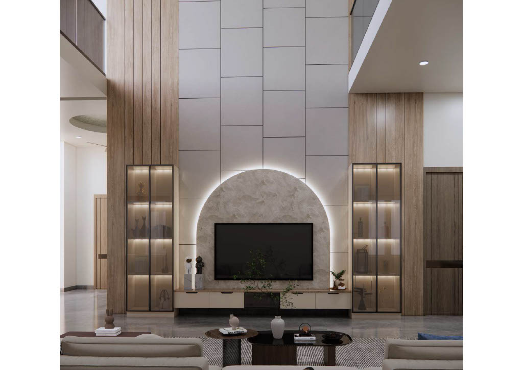 Site Renders embodies elegant serenity through a modern white palette and stylish minimalist approach. Living spaces feature clean lines, subtle wooden accents, and abundant natural light for an open, tranquil feel.